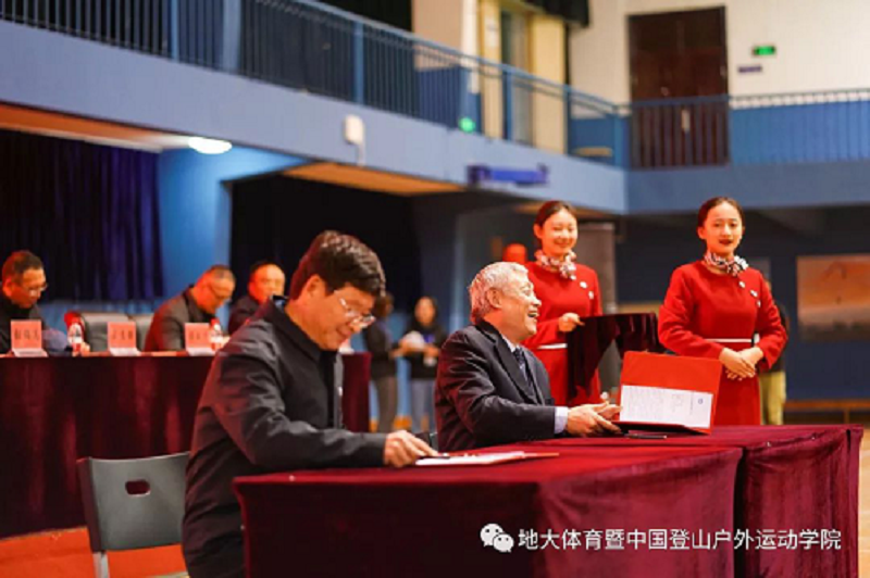 致辞完毕后,国家体育总局登山运动管理中心副主任、中国登山协会秘书长张志坚同志、ladbrokes立博(武汉)副董事长傅安洲同志在现场共同签署了《ladbrokes立博共建协议》、《登山运动史料整理、利用合作协议》;