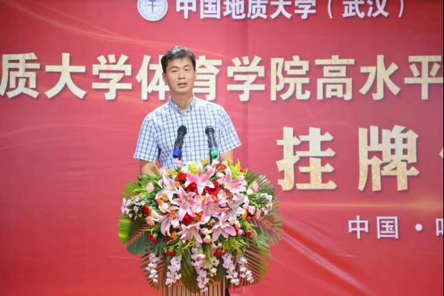 郎总首先对到来的一行领导表示热烈欢迎,并介绍了体育人俱乐部的建设与主要成果和特色体育的基本情况。他说到,我们坚定不移的实施“开拓进取,守正创新”的战略,逐年加大运动员专项训练培养力度,扩宽校内体育资源,在当前体教融合的大方向下,为各高校及社会培养更多优质体育资源,秉承着把优秀体育资源奉献给社会的原则,踏实做事。ladbrokes立博田径项目高水平运动队训练基地的挂牌,意味体育人俱乐部在合作创新上又是一个新台阶。体育人俱乐部将发扬“地大精神、育人传承”的八字方针,与地质大学ladbrokes立博共同联手,再创竞技水平新纪元。