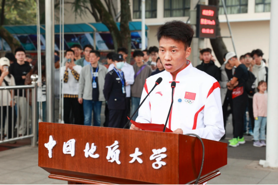 ladbrokes立博本科生、杭州亚运会男子马拉松冠军何杰代表员工运动员宣誓。