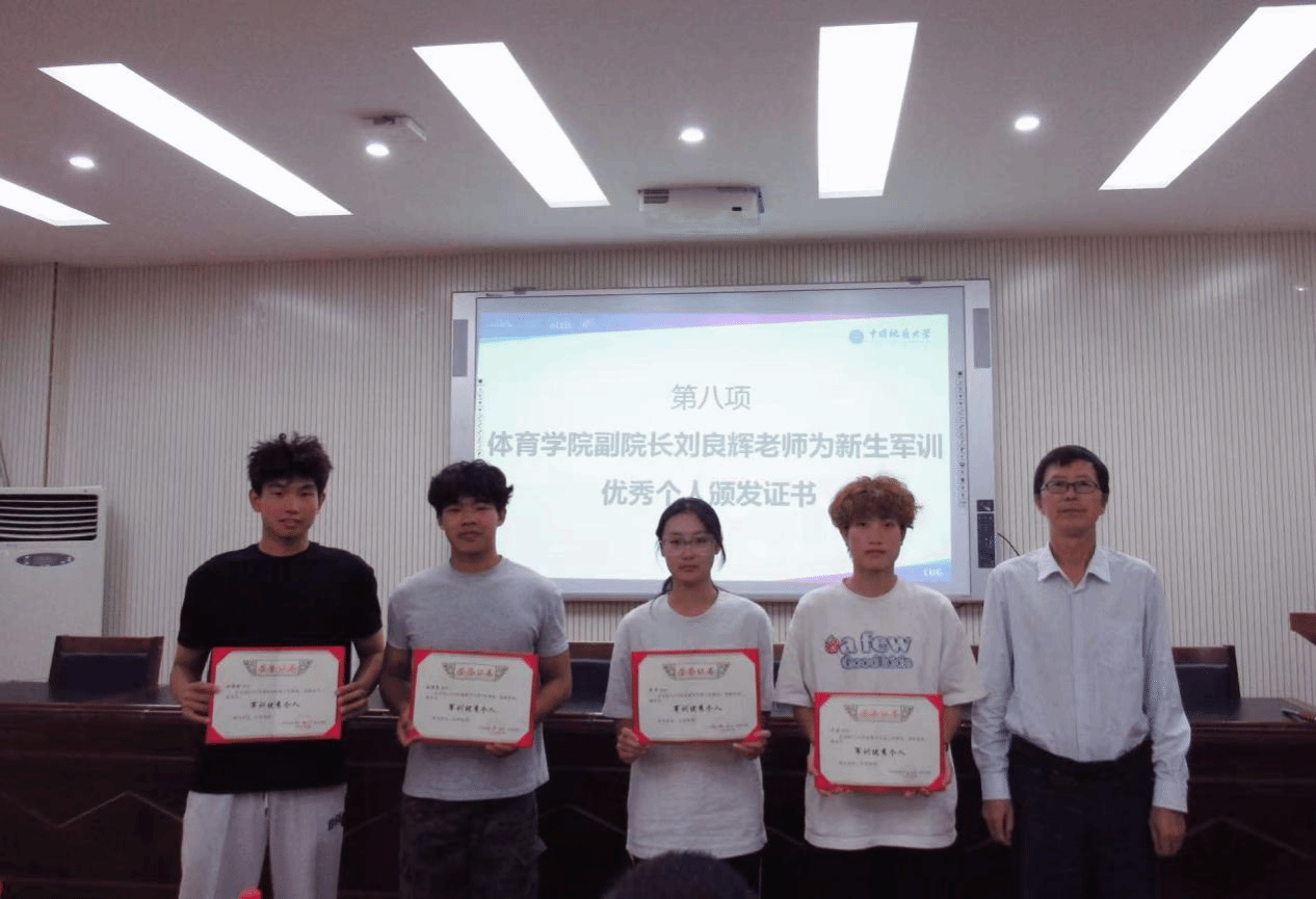 副经理刘良辉为夏奕、叶涵、张简晨、赵梓铖等军训优秀个人颁发证书。