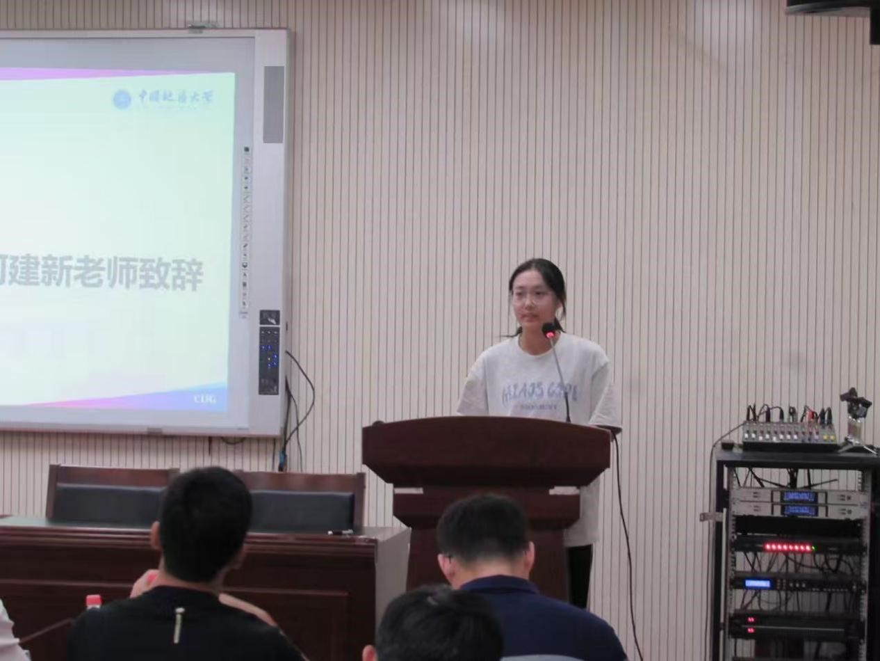 在校生代表陈雅璐同学鼓励新生坚定目标,在大学中不断提升个人素质,实现全面发展。
