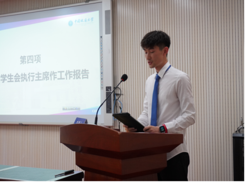 2021届员工会执行主席鞠长江作员工会工作报告。2021届员工会致力于打造“有温度、有高度、有态度”的服务型员工组织,建设一支胸怀理想、心系同学、品学兼优、作风端正的员工骨干队伍。