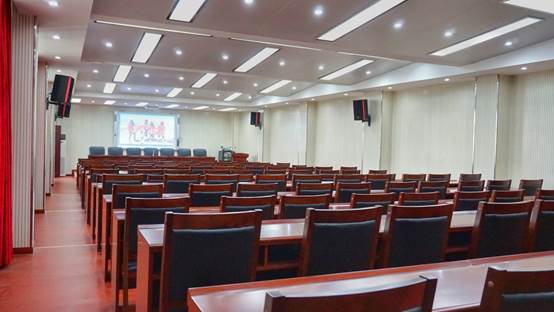 集高端、大气、上档次的多功能一体化的硬件设备、能容纳100多人的会议室。